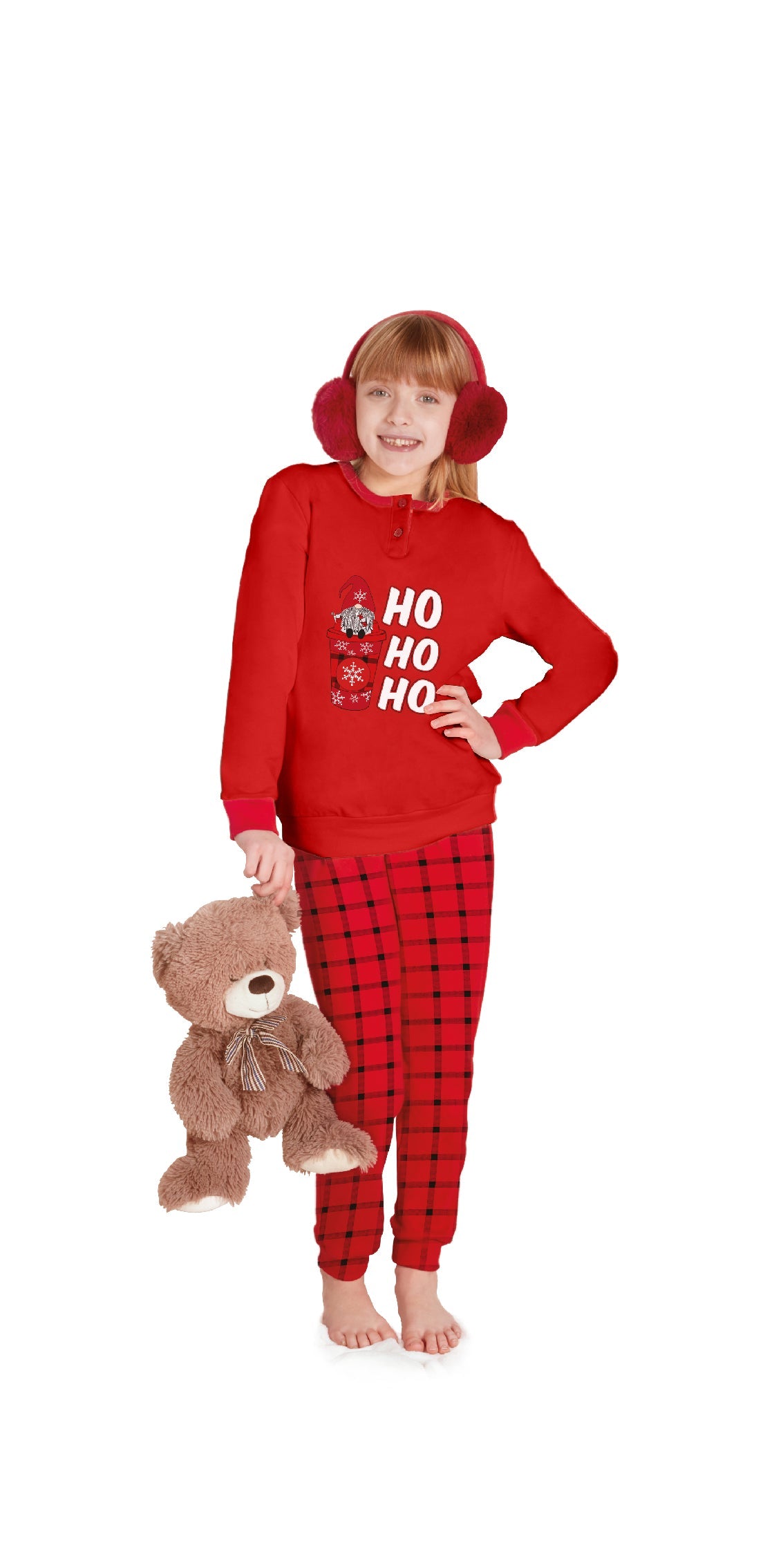 Pigiama Bimba rosso Natale con pantalone scozzese