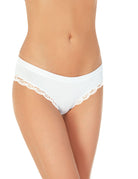 Slip fianco basso in cotone modal, bordato da una balzina in pizzo. Ideale per chi cerca un modello confortevole Composizione : 45%modal-45%cotone-10%elastan