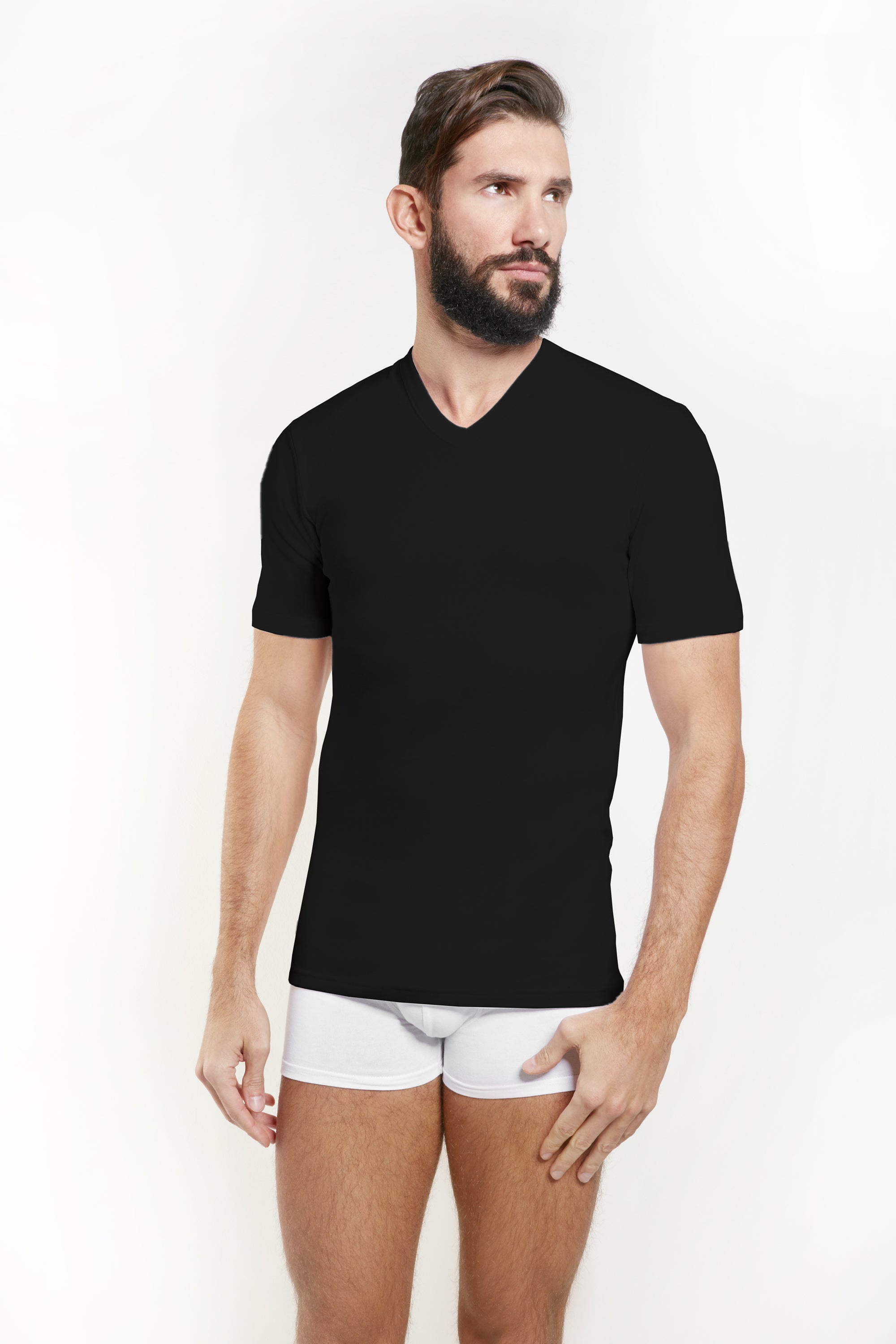 T-shirt scollo a V mezza manica in morbido caldo cotone. La fibra di elevata qualita' Composizione : 100%cotone