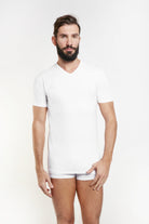 Aggiorna il tuo guardaroba con la nostra maglia da uomo con scollo a V in cotone elasticizzato, perfetta per ogni occasione. Realizzata con tessuto di alta qualita', questa maglia offre un comfort straordinario grazie alla sua elasticita' e morbidezza. Composizione : 93%cotone-7%elastan