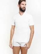 T-shirt scollo a V mezza manica in morbido caldo cotone. La fibra di elevata qualita' Composizione : 100%cotone