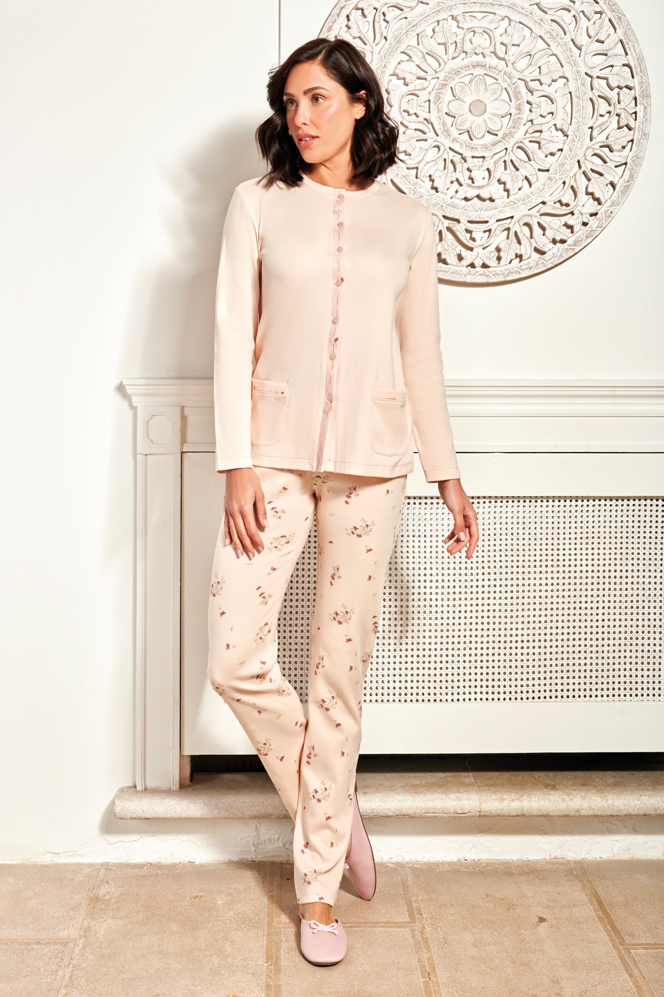 Questo pigiama da donna e' realizzato in caldo cotone, un tessuto naturale e traspirante, ideale per le stagioni piu' fredde. Composizione : 100%cotone