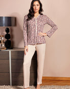 Pigiama in caldo cotone, morbido e accogliente, ideale per le notti piu' fresche. Questo pigiama ha una struttura classica ma con dettagli che lo rendono speciale.La maglia, a maniche lunghe, presenta un design elegante e sobrio, con 5 bottoni. Composizione : 100%cotone