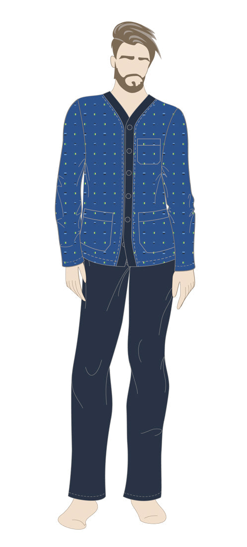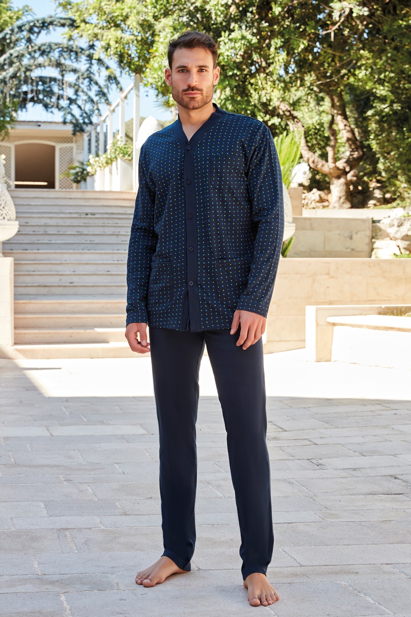 Classico, raffinato e intramontabile, il pigiama uomo con giacca aperta in cotone e' la scelta perfetta per chi cerca comfort e stile anche nei momenti di relax. Composizione : 100%cotone