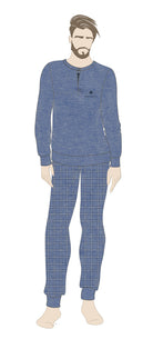 Un pigiama pensato per lÉuomo che cerca praticita' e qualita' nei momenti di relax. La maglia serafino a manica lunga e' caratterizzata dallo scollo con bottoncini, dettaglio funzionale che aggiunge un tocco sportivo e moderno al design. Composizione : 100%cotone