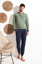 Comodo, pratico e dal design moderno, questo pigiama lungo da uomo e' realizzato in cotone morbido e traspirante, perfetto per offrire calore leggero e una piacevole sensazione sulla pelle durante le notti piu' fresche. Composizione : 60%cotone-40%poliestere