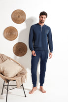 Comodo, pratico e dal design moderno, questo pigiama lungo da uomo e' realizzato in cotone morbido e traspirante, perfetto per offrire calore leggero e una piacevole sensazione sulla pelle durante le notti piu' fresche. Composizione : 100%cotone