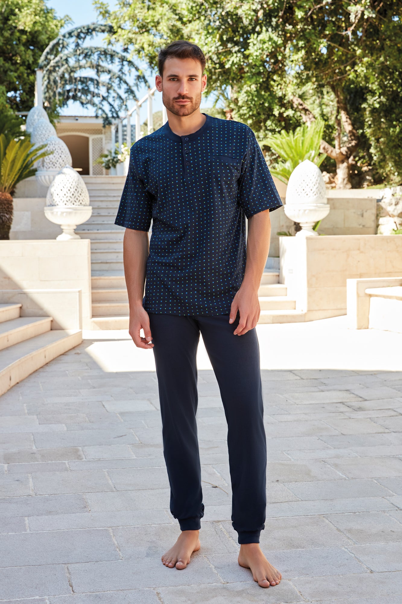 Benvenuto nella nostra selezione di pigiami uomo, progettati per offrire il massimo comfort e uno stile impeccabile. Ogni capo è realizzato con materiali di alta qualità che garantiscono morbidezza e una vestibilità perfetta.
