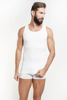Canotta smanicata a spalla larga con collo tondo e costine, in cotone pettinato. Canotta semplice e confortevole. Composizione : 100%cotone