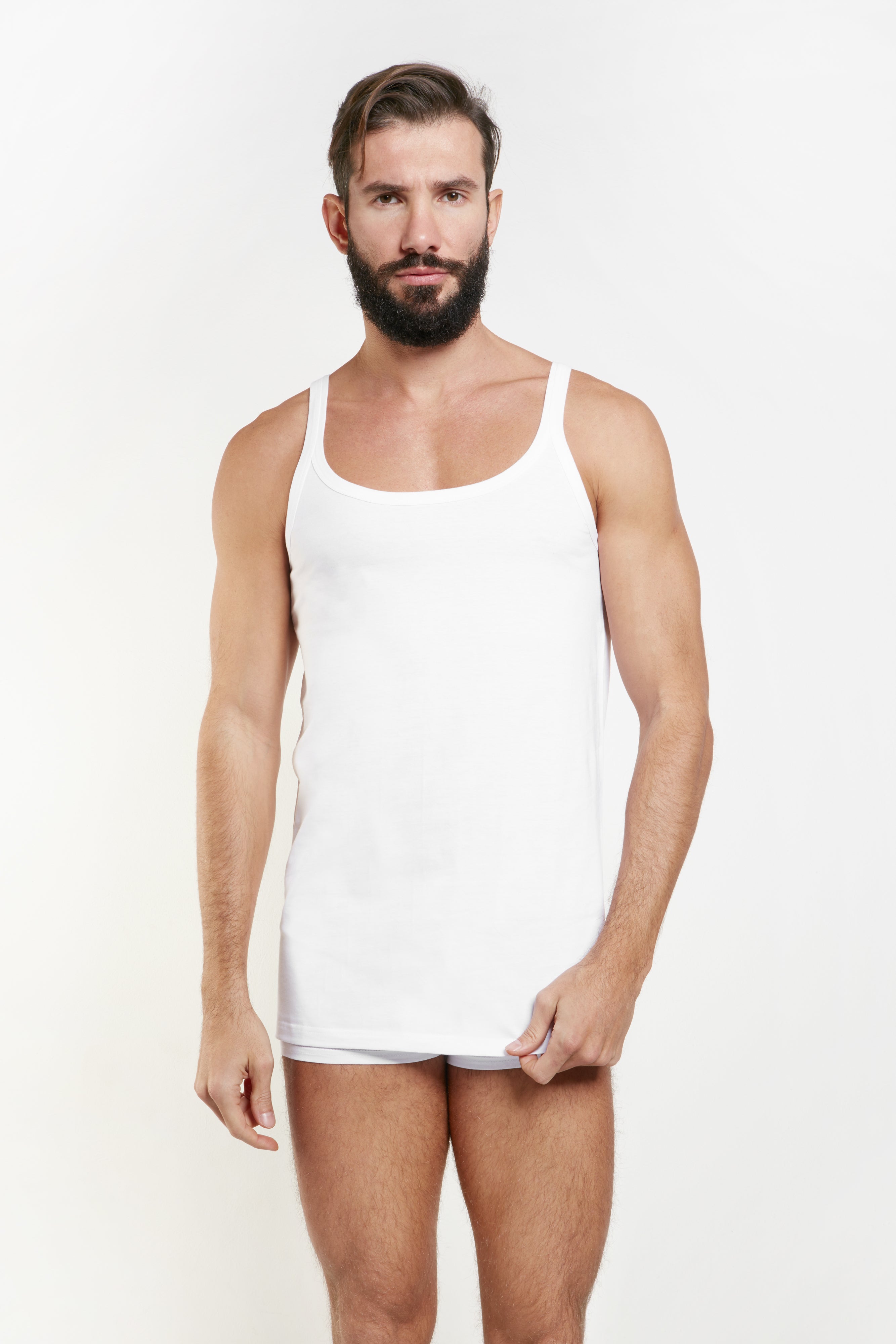 Canotta spalla stretta con collo tondo in cotone pettinato. Canotta semplice e confortevole. Composizione : 100%cotone
