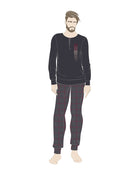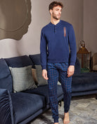 Men's warm cotton pajamas, designed for comfort and style. The shirt has a simple yet elegant design with long sleeves. The soft cotton fabric gently hugs the body. The pants have an elastic waistband. Composition: 100% cotton
