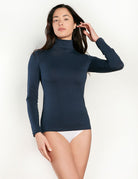 T-shirt dolcevita manica lunga in cotone bielastico, morbido e confortevole. Vestibilita' aderente Composizione : 93%cotone-7%elastan