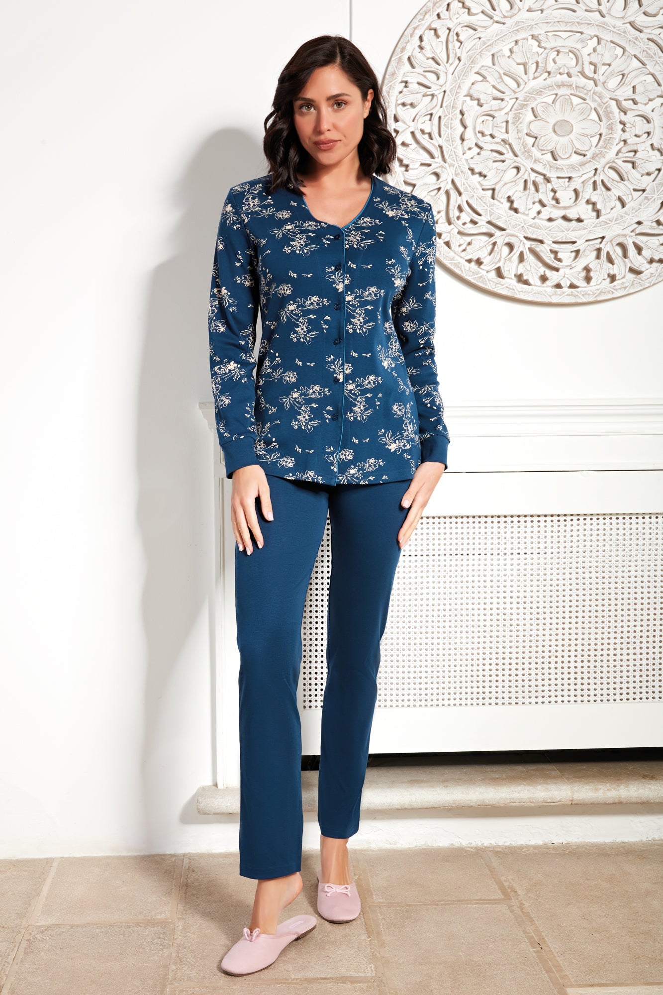 Un pigiama da donna con giacca aperta in caldo cotone e' un classico intramontabile della biancheria da notte elagante nella forma, avvolgente nella sensazione, perfetto per affrontare le serate piu' fresche con stile e comfort. Composizione : 100%cotone