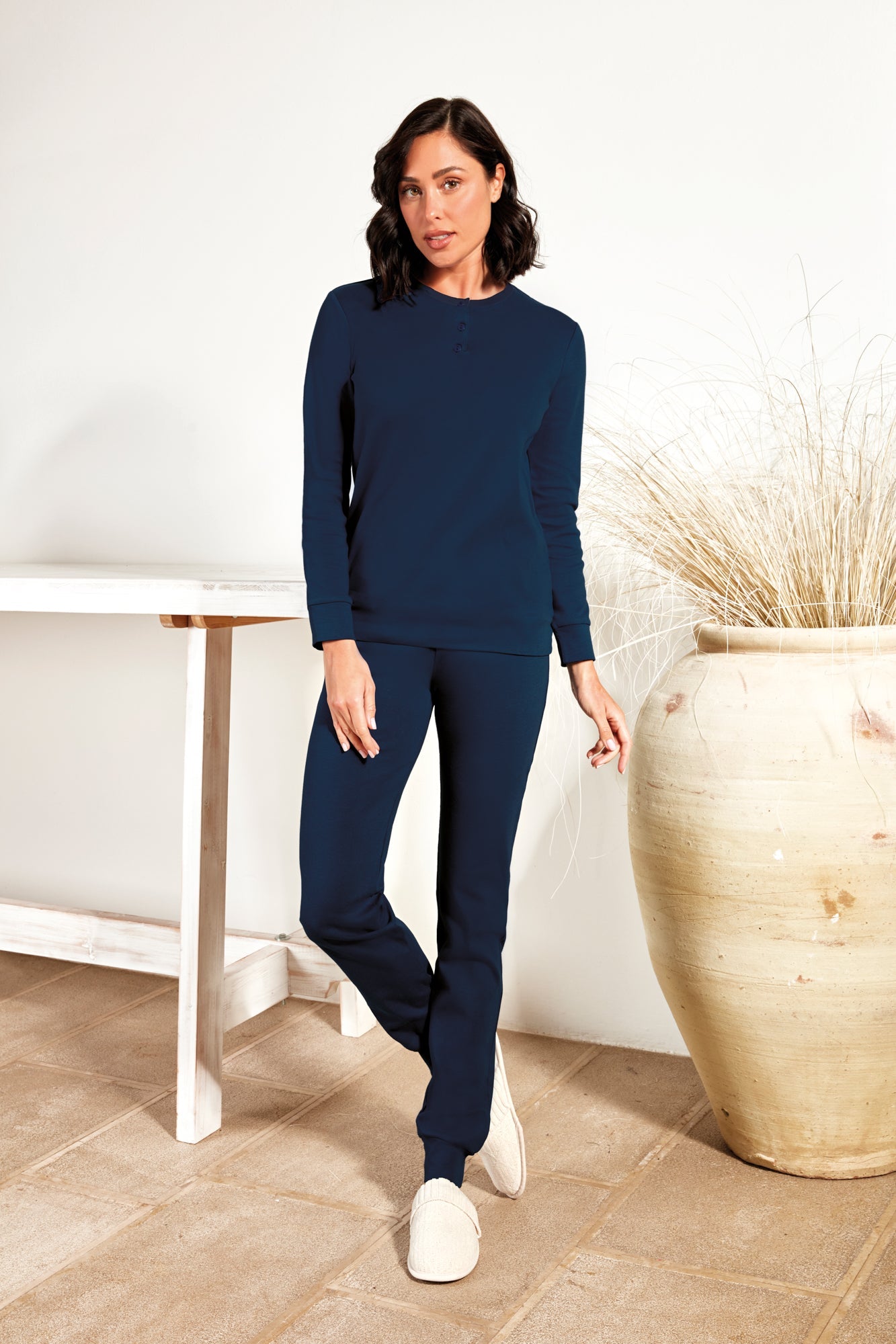 Comodo, pratico e perfetto per le stagioni fredde, questo pigiama in caldo cotone e' pensato per offrire calore e comfort durante il riposo. Il tessuto, morbido e traspirante, e' ideale per mantenere una temperatura corporea piacevole. Composizione : 100%cotone