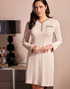 5-button, long-sleeved nightgown with band and cuffs at the bottom. Made of soft, warm cotton. Composition: 100% cotton.