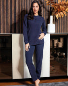 Jacquard pajamas are an elegant and refined piece. They feature a five-button henley shirt with cuffs at the bottom of the sleeves. The trousers have an elastic waist. Jacquard pajamas are ideal for those seeking a balance between comfort and style, even during the night. Composition: 60% cotton - 40% polyester