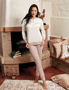 Explore comfort with our women's jacquard pajamas, enriched with a leopard print. Crafted from high-quality jacquard fabric, our pajamas offer a mix of style and softness. Composition: 87% polyester - 13% cotton