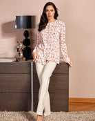 Open pajamas in warm cotton, ideal for winter evenings. The jacket features a classic collar and long sleeves, with a comfortable fit. The button closure offers a touch of practicality and style. The fabric is soft, perfect for keeping you warm. Composition: 100% cotton