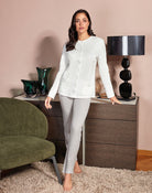Warm cotton pajamas, soft and cozy, ideal for cooler nights. These pajamas have a classic structure but with details that make them special. The long-sleeved shirt features an elegant and understated design, with 5 buttons. Composition: 100% cotton
