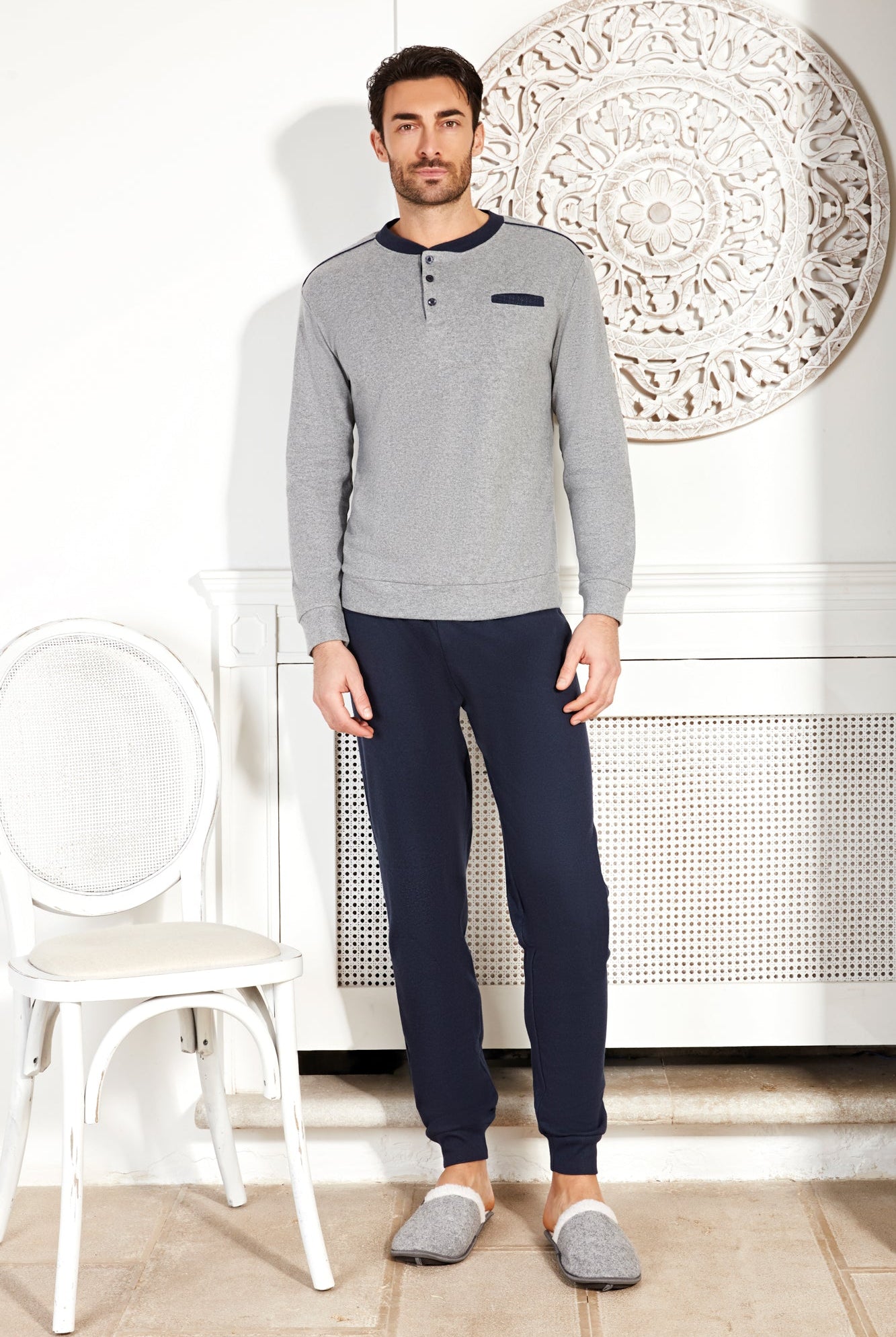Welcome to our selection of men's pajamas, designed for maximum comfort and impeccable style. Each piece is crafted from high-quality materials that ensure softness and a perfect fit.