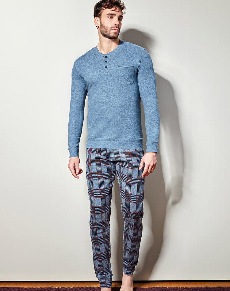 Un pigiama in jacquard da uomo e' perfetto per chi ama un abbigliamento da notte raffinato, ideale per serate rilassanti a casa. Questo capo rappresenta il connubio perfetto tra comfort e stile. Composizione : 60%cotone-40%poliestiere