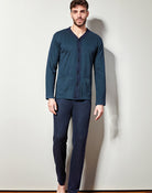 Un pigiama in jacquard da uomo con giacca aperta e' un capo elegante e raffinato, che unisce il comfort del pigiama tradizionale alla ricercatezza dei materiali e al design sofisticato. Composizione : 60%cotone-40%poliestere