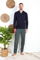 Pigiama da uomo con giacca aperta, realizzato in puro cotone per un comfort naturale e una sensazione di freschezza sulla pelle. I pantaloni hanno una vestibilita' rilassata, con elastico in vita. Il taglio e' dritto,pensato per offrire liberta' di movimento. Composizione : 100%cotone