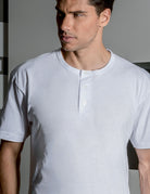 T-shirt 3 bottoni mezza manica in cotone pettinato. Composizione : 100%cotone