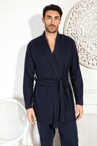 Eleganza e comfort si incontrano in questa vestaglia da uomo realizzata in punto Milano, un tessuto morbido, compatto e piacevolmente caldo, ideale per la mezza stagione e i mesi piu' freddi. Composizione : 65%poliestere-30%cotone-5%altrefibre